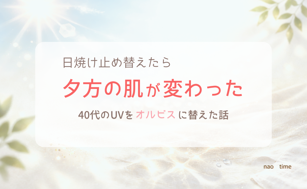 40代の日焼け止めを見直したら、夕方の肌が変わりました。シワ・美白・乾燥対策を考えてオルビスに替えた理由と、実際に続けて感じた変化をまとめています。 -
