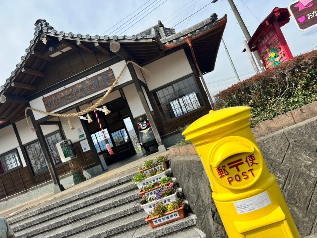 - 駅舎前に「幸せの黄色いポスト」