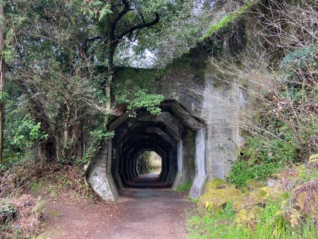 落石除けとして作られた「八角トンネル」が今も残り、蔦がからんだ八角形の洞門が連なる光景は…