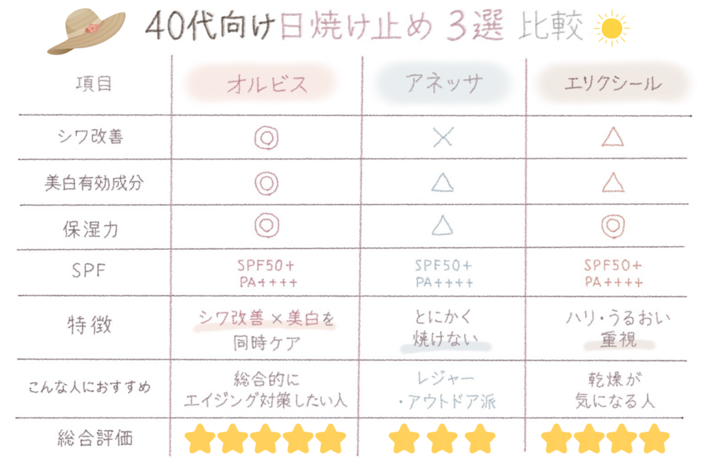 40代向け日焼け止め3選を比較